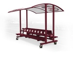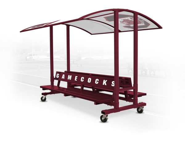 These 8' long shelters have a unique back-to-back seating design that seats 12 athletes comfortably.