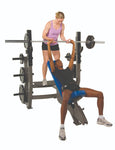 UCS Olympic Incline Bench - Ergonomic, multi-Functional and fully adjustable. 12-peg weight storage. Bar height is adjustable up to 10 inches in 2" increments. The seat pads are made with 2" thick foam and height is adjustable up to 7.5" in 1.5" increments.
