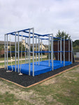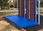 We use highly durable 21oz Knife Coated Vinyl top fabric which has been used on our outdoor track and field pads for over 40 years! An 18oz rip stop vinyl weather cover connects to and covers the pads when not in use. All of the vinyl is waterproof by nature (seams are not waterproof). Vinyl comes in 15 colors to match your brand and wall paint schemes. Custom graphics available for an additional charge.