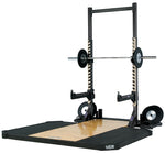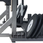 Standard Equipment: low profile bumper plate storage unit, vertical bar sleeves, quick release single bar holders, a 15"" deep spotters area manufactured out of .25"" steel diamond plate and powder coated wrinkle black.