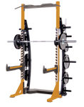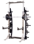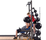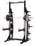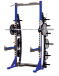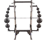 Standard Equipment: Weight storage unit, bar holder, combo grip pull-up bar, quick release single bar holders, and an 18” deep spotter’s area manufactured out of 1/4" steel diamond plate and powder-coated wrinkle black.