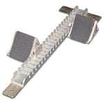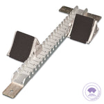 The rail is 0.5" thick extruded aluminum that is virtually indestructible. The surface is anodized to military specifications to prevent oxidation and corrosion. The pedals are cast aluminum with four fingertip control angle adjustments. The pedal face is 100% polyurethane track surface and is a full 5.5" wide to allow maximum variation in foot placement. The twelve spikes are of variable length for complete adhesion to the track.