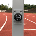 Steel beam fully encapsulated with 12mm synthetic surfacing. Built-in safety counterbalance system. Manufactured out of 4” x 4” electrostatically powder-coated aluminum, with a 4” x 4” steel beam barrier encapsulated with 0.5” thick synthetic surfacing.