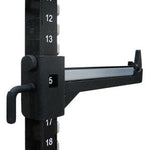 UCS Safety Spot Arms - 7-gauge and 0.5" laser cut steel plate fully welded construction. HDPE hook at front prevents bar roll-off and offers additional starting point for activities. The HDPE shields and hooks protect the bar from damage. (Sold as a pair).