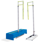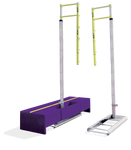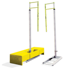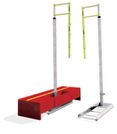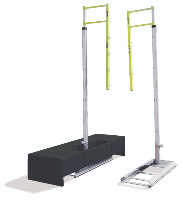 UCS® Gold Series Pole Vault Standards - Perfect for high school and small clubs. Uprights are semi-hollow anodized aluminum extrusions. Include built-in extenders. Quick set adjustment system locks the upright securely in place.