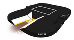 UCS Pole Vault Advantages: Angulax Design - The front unit's inner part is constructed with a 30° angle, which allows them to be placed directly on the back and side edges of the vault box without impeding the bend of the pole or requiring a box collar.