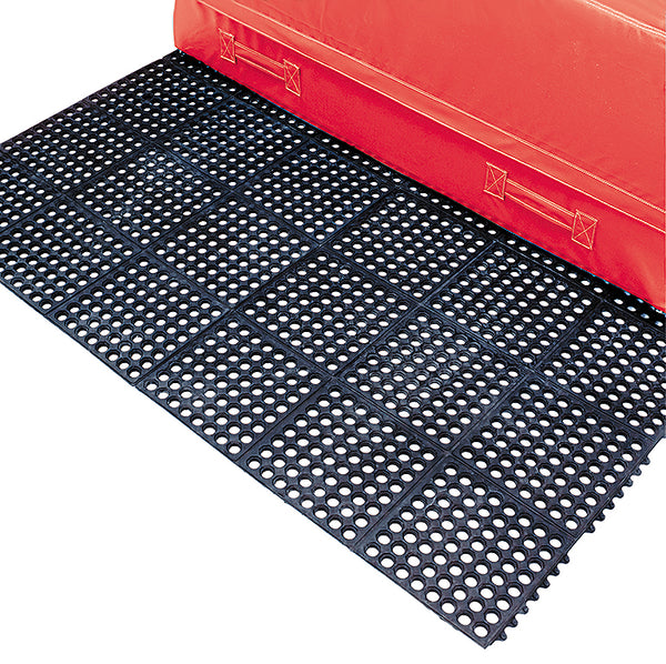 Manufactured in small sections which secure together to allow for easy assembly and break-down. This platform will also minimize slippage during training and competition.