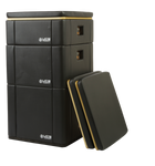 A raised lip on all boxes allows for stacking and locking of the lids.