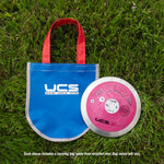 Each discus includes a carrying bag made from recycled vinyl. (Bag colors will vary).